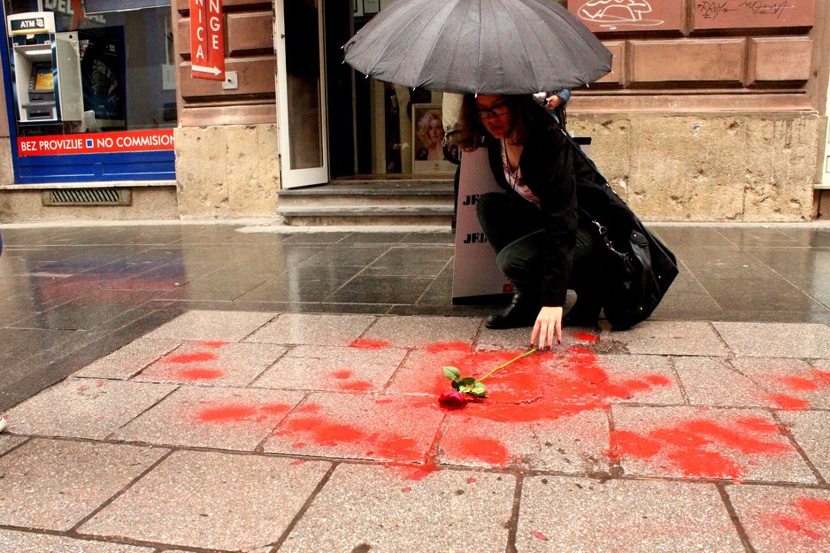 Les militants du mouvement "Initiative des jeunes pour les Droits humains" ont repeint les très fameuses "Roses de Sarajevo" sur le périmètre de la grande Cathédrale et de la célèbre Vijecnica, bibliothèque incendiée durant trois jours au début de mai 1992. De plus en plus nombreux, les membres de l'Initiative essaient d'arracher de l'oubli des monuments authentiques du siège de Sarajevo, qui a duré pas moins de1425 jours, entre 1992 et 1995.