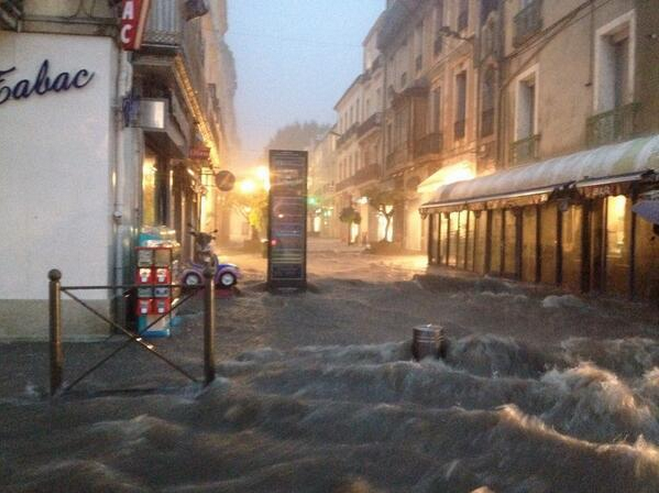 Sète s'est retrouvée sous les eaux. Le record du 3 septembre 1999 (72.4 mm) a été battu, ce 4 octobre 2013, avec 83.8 mm tombés en 2 heures, seulement. Internautes et journalistes ont rendu compte de l’événement, en photos et en vidéos.