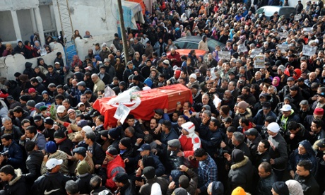 "Le peuple veut une nouvelle révolution", « Chokri repose toi, on continuera ton combat » scandait la foule, dénonçant ouvertement les islamistes d’Ennada au pouvoir. Les affrontements entre policiers et des manifestants se sont poursuivis sur l'avenue Bourguiba.