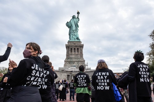 Action symbolique très forte : le rassemblement de 500 juifs américains au pied de la statue de la Liberté pour exiger un cessez-le-feu et la fin des bombardements contre les civils palestiniens à Gaza.