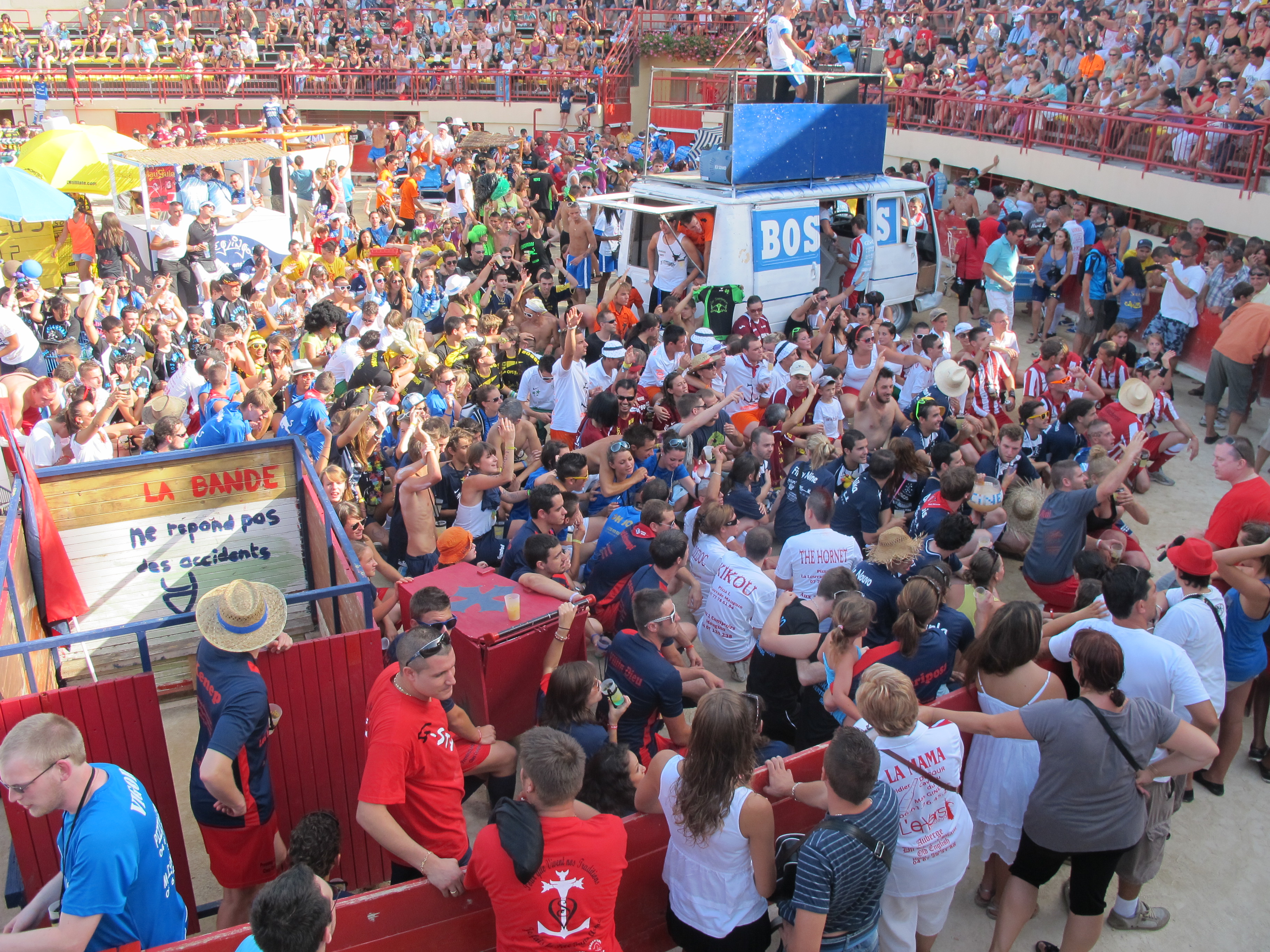 C'est parti pour neuf jours de fête sans arme à Mauguio, dans l'Hérault, en Languedoc-Roussillon ! Lancées hier avec notamment le traditionnel défilé des bandes de Mauguio (les « festéjaïres »), les festivités vont se poursuivre à un rythme enivré jusqu'au 19 août (le programme est consultable intégralement, ici, sur le site de la Ville de Mauguio).
