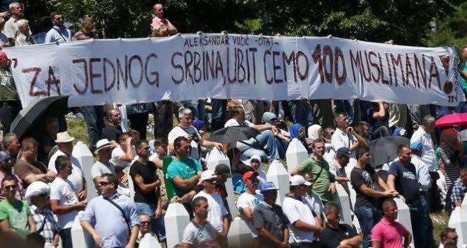Ce même homme qui fait mine de tendre une main amicale aux survivants du massacre, qu'il se garde bien de nommer génocide, avait bel et bien déclaré en 1995 au même endroit :"Pour chaque Serbe tué, nous exécuterons 100 musulmans bosniaques".
