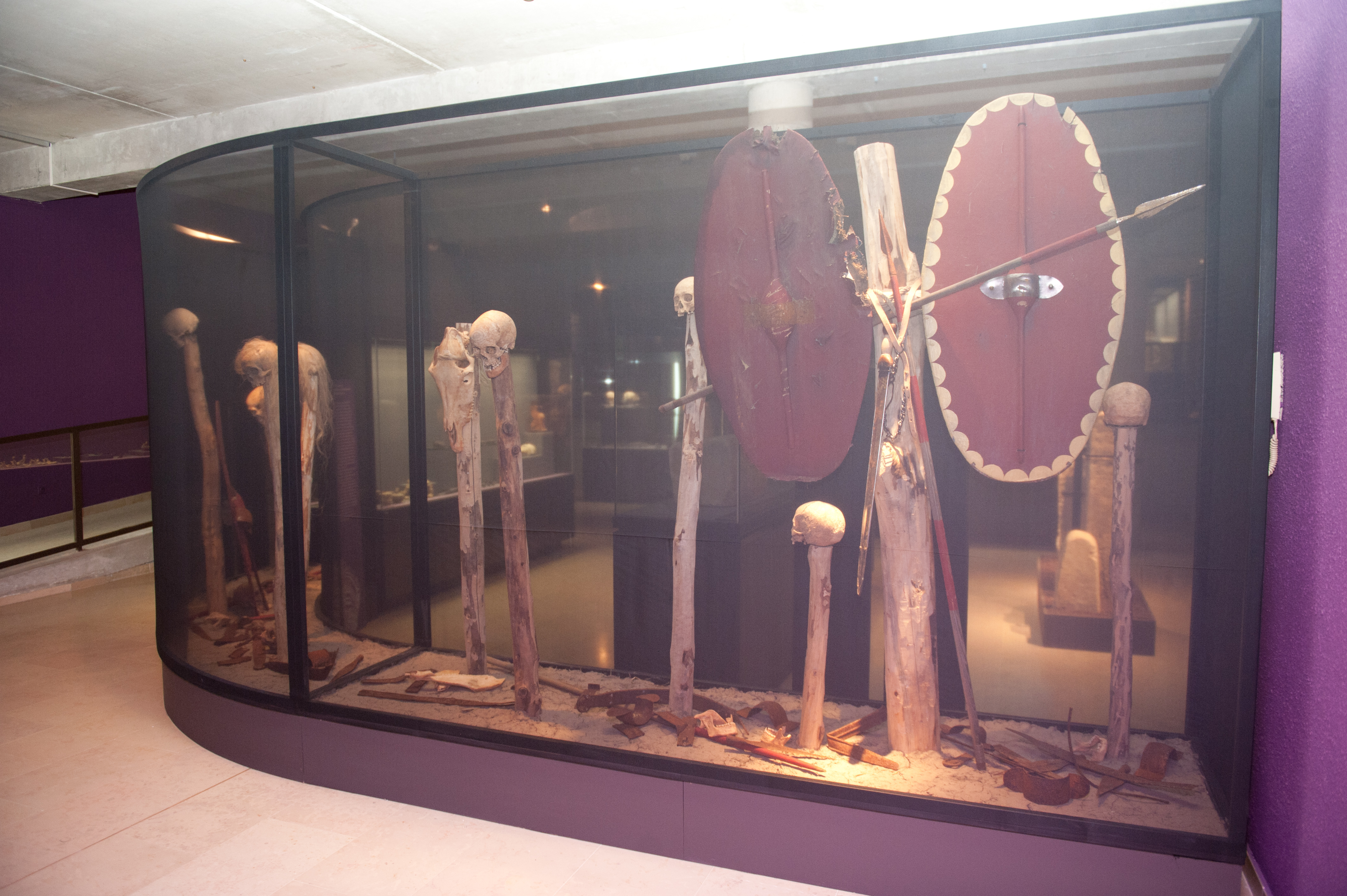 A ce stade du parcours muséographique, le visiteur est prêt à plonger dans une nouvelle dimension : celle du grand fossé qui sépare les populations celtes, ibériques et grecques, bien qu'elles partagent la même époque. Avec d'un côté la culture orale, et visiblement très guerrière, des Gaulois. Et de l'autre, la culture écrite et plus spiritualiste, des Grecs. Au milieu, restent les Ibères et leur tronc commun avec ces deux populations. En résumé, ils peuvent couper des têtes, comme les Celtes, mais érigent aussi des temples, comme les Grecs.