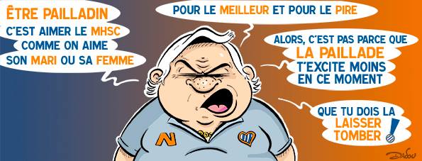 Aujourd’hui, c’est Dadou, le dessinateur officiel du MHSC qui en remet une couche. Pas de lunettes de plongée, ni de short de bain, juste un dessin de couverture et cette phrase de statut :