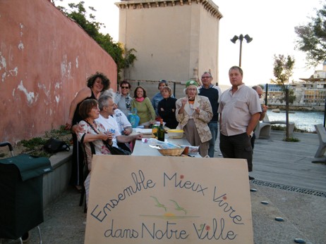 20 heures. Au dessus de la plage des catalans, une quinzaine de voisins chante des chansons populaires regroupées dans une anthologie. La fête a commencé dès 17 heures sur la plage avec des jeux pour les enfants du quartier qui ont réuni une cinquantaine de personnes. Elle a continué avec un intermède musical et se termine à présent autour d’un apéritif offert par l’association ‘Ensemble mieux vivre dans notre ville – Marseille 7ème’ et d’un repas entre amis.