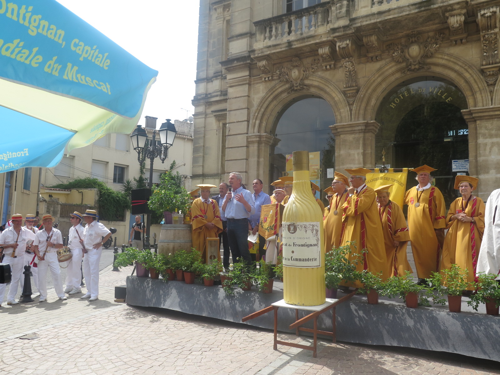 En ce dernier jour de juillet, la Ville deFrontignan est le cœur battant du muscat dans l’Hérault après avoir été contrainte de repousser cette manifestation suite à l’attentat de Nice. Hier comme aujourd’hui, les producteurs de Lunel, Mireval et Saint-Jean de Minervois ont répondu présents à l’invitation de la Ville, du Syndicat de défense du muscat de Frontignan et du Département de l’Hérault et se sont tous rassemblés aux abords de l’Hôtel de Ville de la commune frontignanaise.