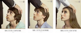 La campagne, lancée ces dernier jours, mettait en scène dans trois photos de jeunes à genoux devant un adulte, une cigarette à la bouche, dans une position à connotation clairement sexuelle.