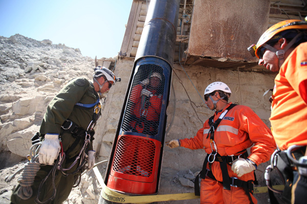 Une grue fabriquée en Chine glissera une capsule spéciale dans le tunnel pour atteindre les mineurs à une profondeur de 622 mètres, et remontera la capsule en transportant un mineur à la fois. On estime qu'il faudra 48 heures pour faire remonter tous les mineurs bloqués.