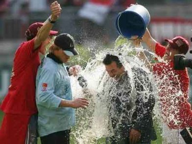 Et ce "bain" est devenu une tradition spéciale au stade Allianz Arena.
